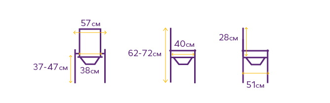 • высота — от 62 до 72 см