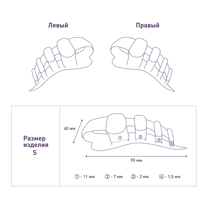 • изделие состоит из 4-х межпальцевых перегородокразного размера для разделения деформированных пальцев