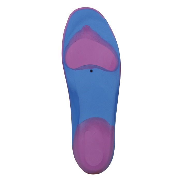 • зоны из более мягкого пенополиуретана разгружают области плюснефаланговых суставов, пятку, плантарную фасцию и первый палец стопы