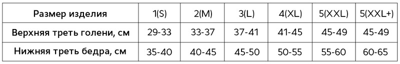 Для подбора размера следует измерить нижней трети бедра на 15 см выше середины надколенника и верхней трети голени на 15 см ниже середины надколенника.